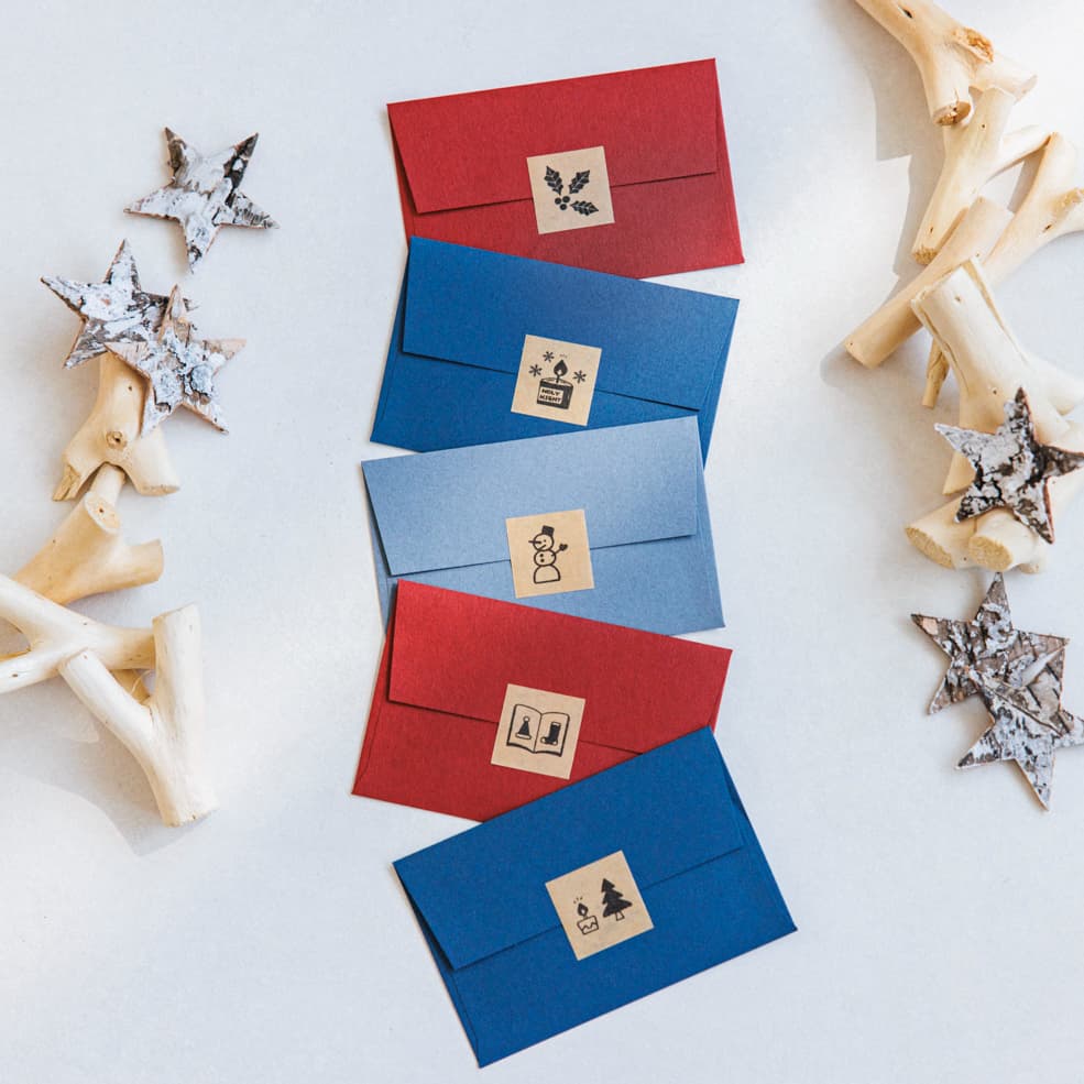 クリスマスカードやお手紙を贈るときの封留めにericさんのクリスマス絵文字を使えば、開ける前からワクワクする贈り物に。